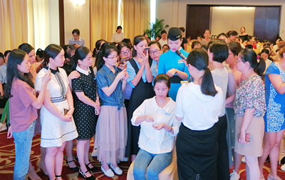 实操训练是此次学习班的一大亮点,由厦门航空资深礼仪培训师及我院接受过专业礼仪训练的16名内训师承担。她们从职业仪容仪表、妆容、政务及商务礼仪等进行示范培训,培训师精致的妆容,优雅的体态,标准的礼仪动作,激发了学员的学习热情和兴趣。最终,经过考核人人过关,圆满完成学习任务。经专家评选,27人获“最佳学员奖”。