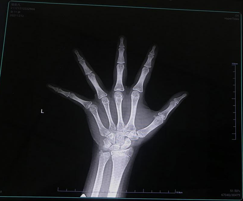 判断孩子还能不能长、能长多少,要看孩子的骨龄状况。通过拍摄孩子左手腕部分的X光片,能看到孩子生长空间、潜力有多少。 孩子骨骺一旦闭合,孩子就很难增高了!